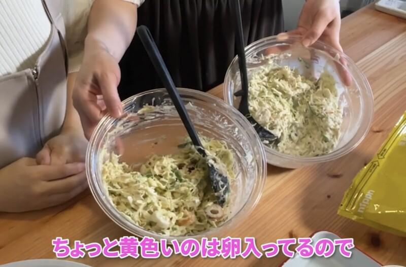 - 具材(豚肉以外)を完成した生地に入れ混ぜる。