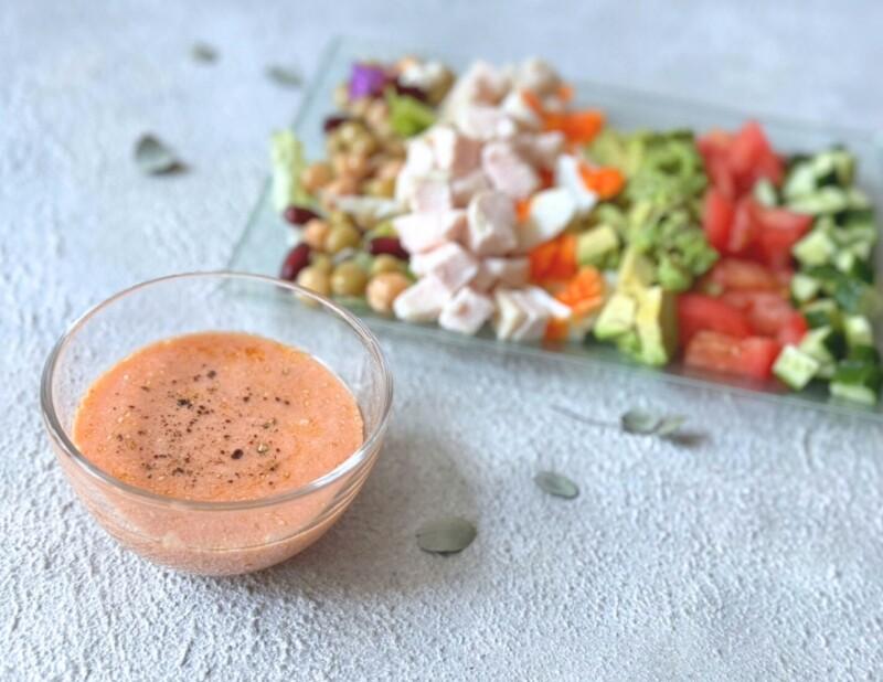 - すべての材料を容器に入れ、乳化するようによく混ぜる。(小さな泡立て器があると便利)