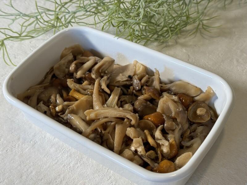 - きのこを食べやすい大きさにカットし、耐熱容器に入れる。