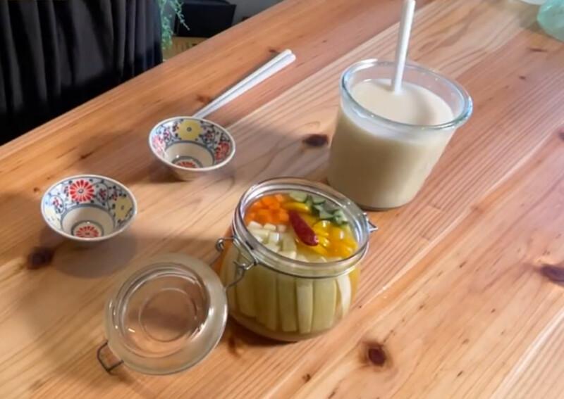 - 耐熱容器にだし汁・酢・砂糖・塩麹を入れて混ぜ、電子レンジで500wで2分30秒加熱して砂糖を溶かす。